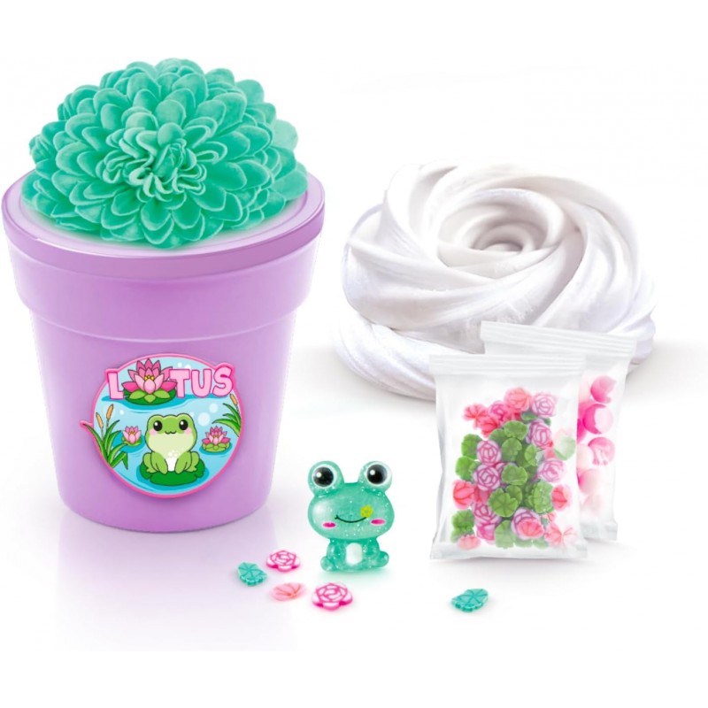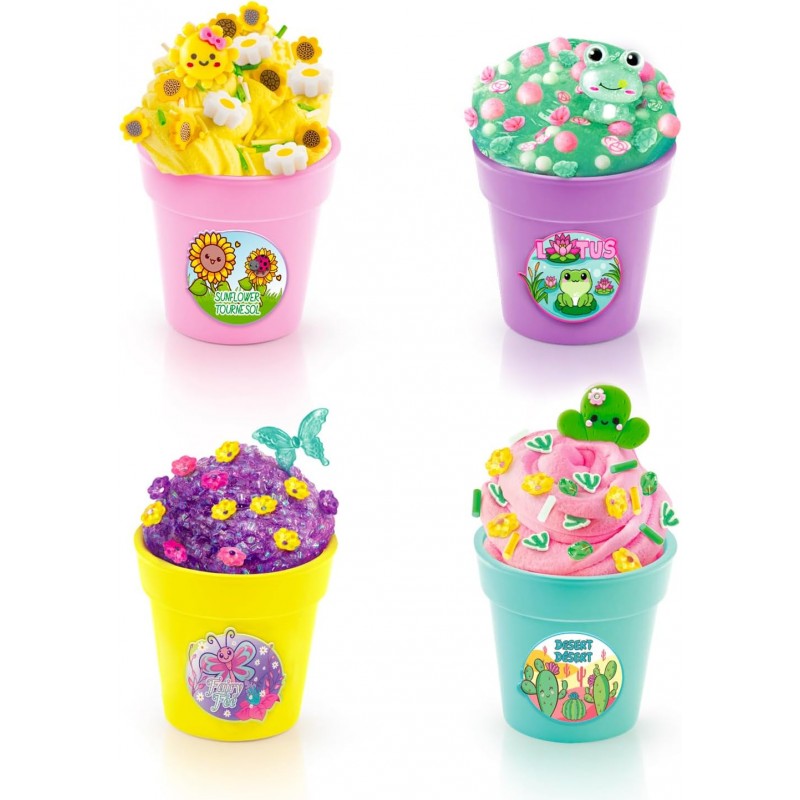 Кожен горщик містить ароматний слайм та барвисту квітку, яка розчиниться та додасть кольору слайму!
