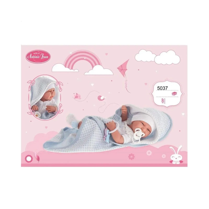 Пупс Карло в ковдрі з куточком з м'яким вініловим тілом 42 cm Antonio Jua 5037